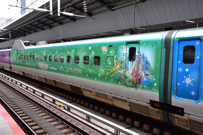 2024(令和6)年10月10日から翌年6月上旬までの予定で、JR東日本のE5系U6編成が特別車両「Magical Journey Shinkansen」となって運転されています。これは、JR東日本と東京ディズニーリゾートがコラボしたもので、2024(令和6)年6月6日に東京ディズニーシーに新たにオープンした「ファンタジースプリングス」をテーマにデザインされています。なお、E5系のフルラッピングは初です。