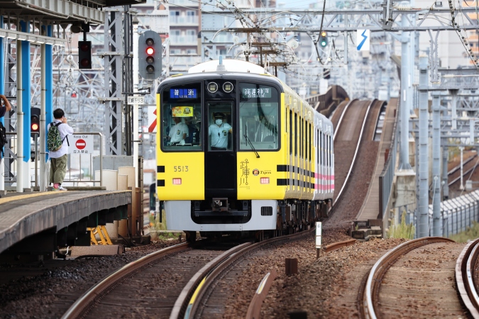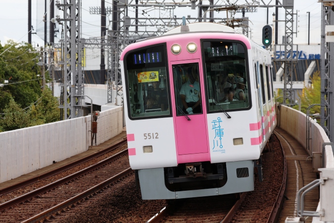 2025(令和7)年10月3日(金)〜5日(日)、阪神タイガースのセントラル・リーグ2025の優勝を記念し、普段は武庫川線を走行している5500系「タイガース号」と「トラッキー号」を併結させて、平日3往復、土日3往復半を本線の普通列車として運行されました。10月4日(土)の模様を撮影しましたのでご紹介します。残念ながら生憎の空模様でしたけれど、多くの皆さんが各駅に出掛けておられ、関心の高さが伺えたとともに、一般の皆さんもスマホ等を向けられるなど和やかな雰囲気に包まれておりました。