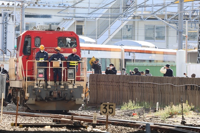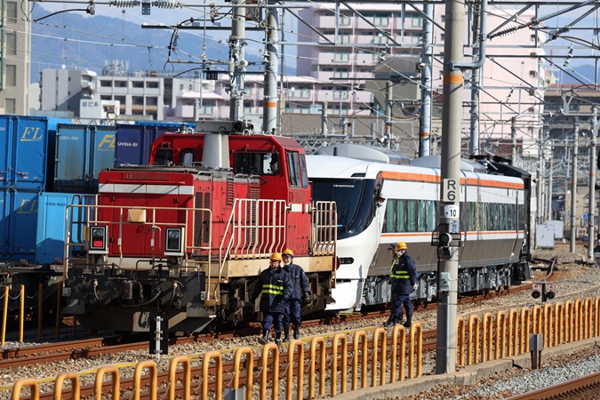 特急「しなの」用385系2両が甲種輸送される