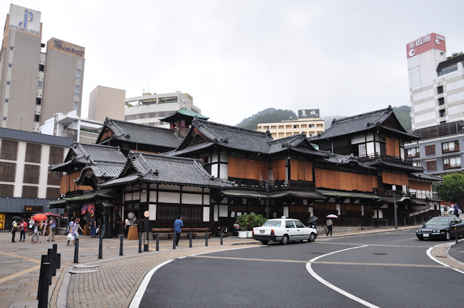 こちらは道後温泉本館を背後から見た姿。特に右側は、なかなか凄まじい状態になっております(笑)。ちなみに、設計者の坂本氏は城郭建築の棟梁であったため、このような本丸御殿のような建物になっています。