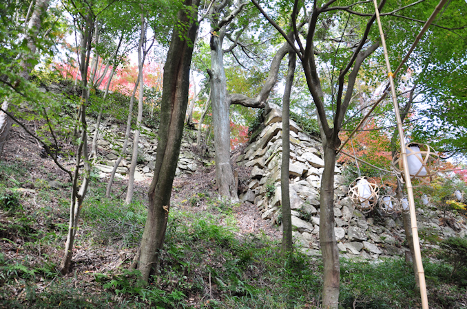 山頂部の山城と谷筋の空間に設けられた居館部分に分かれ、山城部分は総石垣造りです。