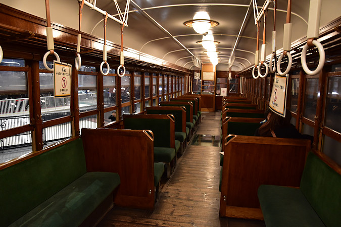 1914(大正3)年製。現存では、わが国最古の国産ボギー式木造電車で、当時としては大型の全長16m。屋根上にはプラスとマイナスの2本のトロリーポールを持っており、鉄道博物館ではその様子を写真のように解り易く示しています。 なお、同車は現在の中央線や山手線で活躍した後、私鉄などを渡り歩き、日立電鉄で現役を退きます。その後、1972(昭和47)年に日本の鉄道100年の記念事業として、国鉄大井工場で復元されて保管されてきました。