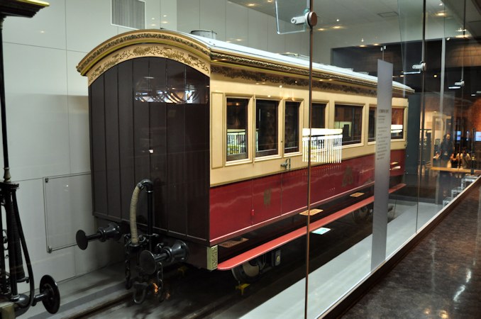 1916(大正5)年製。当時の皇后陛下のお召し用として製造されたもので、1935(昭和10)年まで活躍。女官室部分がカットされ、交通博物館で保存されていました。