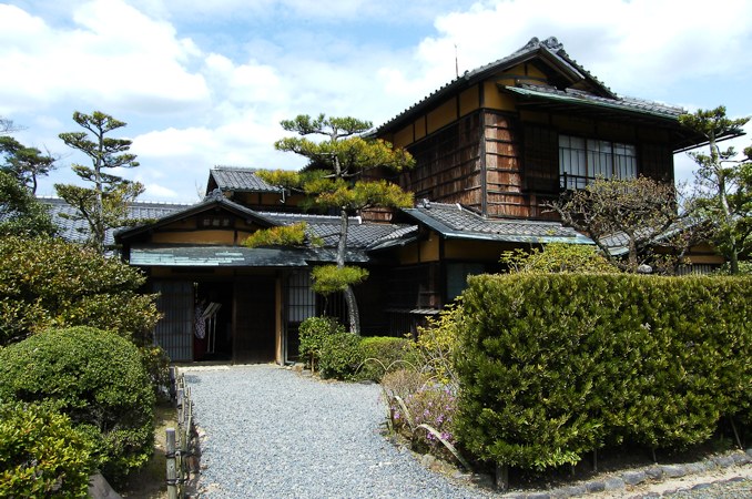 1908(明治41)年築。大阪の豪商である芝川又右衛門の別荘として建てられたもので、武田五一(後に京都帝国大学建築学科の創設者となる)が設計。関東大震災後の1927(昭和2)年に、和館を増築する際に耐火を意識した外壁にスパニッシュ風な壁に変更しています。なお、たびたび増改築をしていますが、武田五一が関わり続けました。