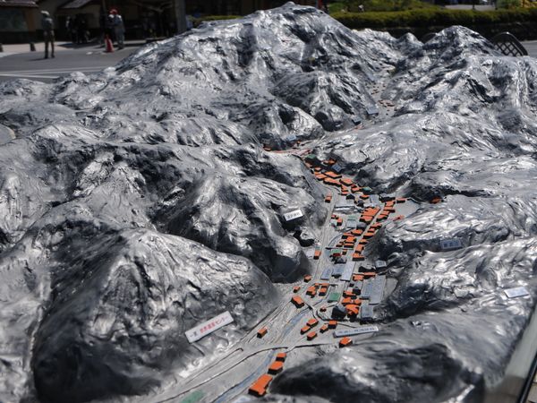 銀山公園にある石見銀山の全景模型。といっても実際は山の向こう側にある港まで世界遺産です。