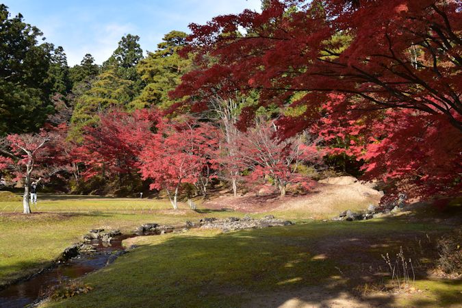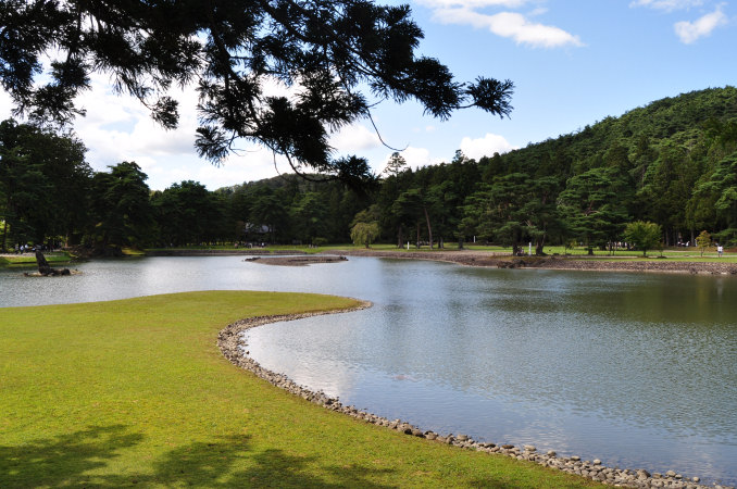 発掘された遺構を元に800年ぶりに復元された平安時代式の庭園。貴族たちが「曲水の宴」と呼ばれる優美な宴を催していました。