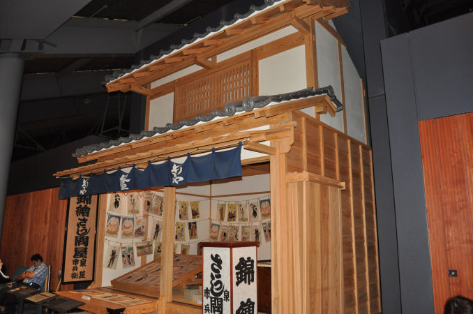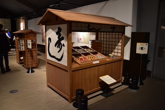 「東海道名所図会」に描かれている和泉屋市兵衛の店(甘泉堂)を元に実物大で復元したもの。