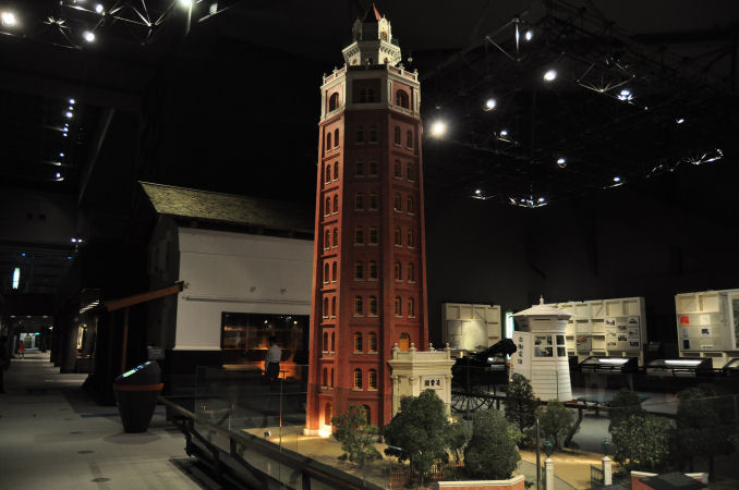 1890(明治23)年に浅草に誕生した高層建築。12階建てでしたが、関東大震災で倒壊しました。1/10模型。