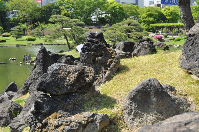 洋館も建てられ、離宮としての整備が進められたこの場所でしたが、1923(大正12)年の関東大震災で洋館は焼失。翌年、昭和天皇の御成婚を記念して東京都に下賜されると共に庭園が復旧され、一般公開されています。都内に残る池泉回遊式の大名庭園として貴重なもので、また程よい広さと起伏に富んだ地形は、まさに日本庭園の見本のような雰囲気です。