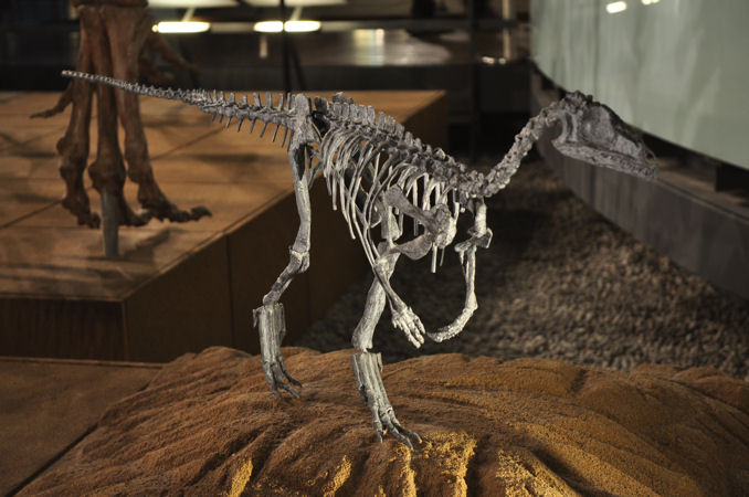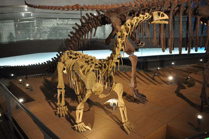 館内には所狭しと恐竜をはじめとする古生物の全身復元骨格や、鉱物など地球に関係する展示が行われており、恐竜に関しては世界でも有数の常設展示数を誇ります。当然、恐竜に関する様々な疑問についてわかりやすく展示しているほか、多くの恐竜、古生物の全身復元モデルも展示しており、骨だけではなかなか分かりづらい、生きていたときの姿がどうだったのか、という疑問にも答えています。