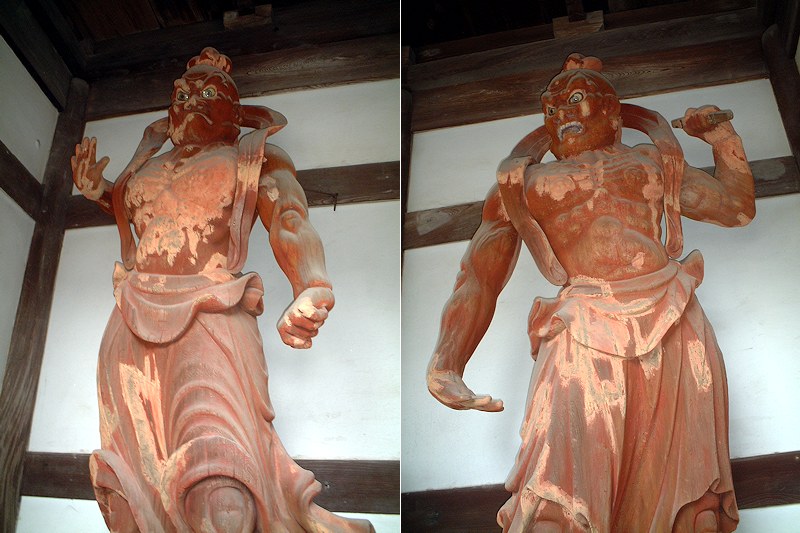 楼門内にある高さ2.8mの木造仁王像。像内に永仁二年(=1294年)の銘があります。