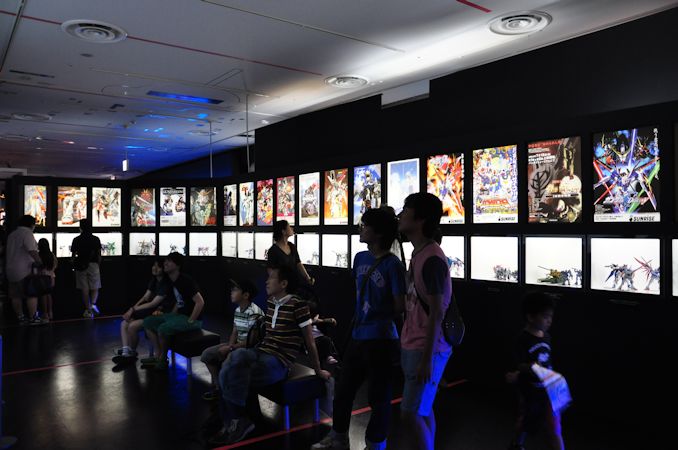 歴代ガンダムのオープニング映像が流れるほか、放送時の広告やガンプラが展示