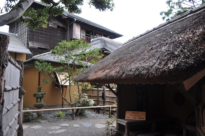 待合は茶室に招かれた客人が、茶の準備が出来るまで待っていた場所。壁には徳川斉昭の書(「巧詐不如拙誠」=こうさせっせいにしかず)が塗りこまれています。