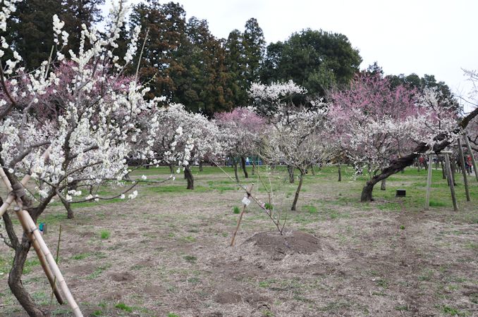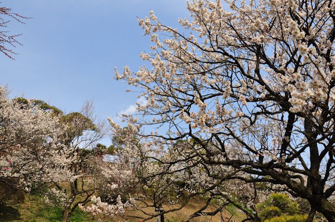 徳川斉昭が自らが設計したもので、木造2層3階建ての好文亭本体と木造平屋建ての奥御殿から成ります。1945(昭和20)年の空襲で焼失し、1958(昭和33)年に復元されますが、1969(昭和44)年に奥御殿が落雷で焼失。1972(昭和47)年に再度復元されました。内部の写真については後ほど紹介するとして、そろそろ最大の見所である梅の写真を掲載しましょう。