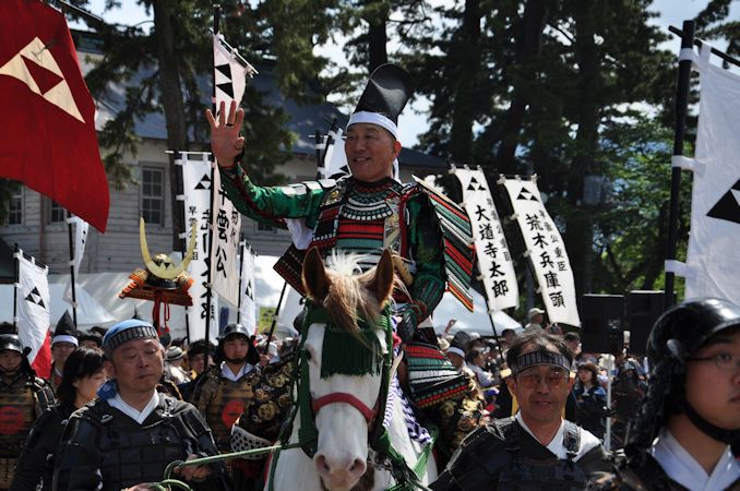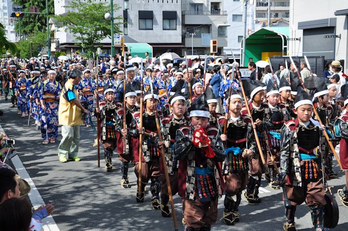小田原北條五代祭りは、戦国時代に小田原を本拠とし、5代100年にわたって関東に覇を唱えた後北条氏を称える小田原市最大のお祭りで、北条五代歴代城主を模した武者行列と、地元の吹奏楽部や陸上自衛隊などの音楽隊、神輿などが小田原城周辺を一周します。今回は2015(平成27)年5月3日に開催された第51回の様子をご紹介します。(撮影&解説:裏辺金好)