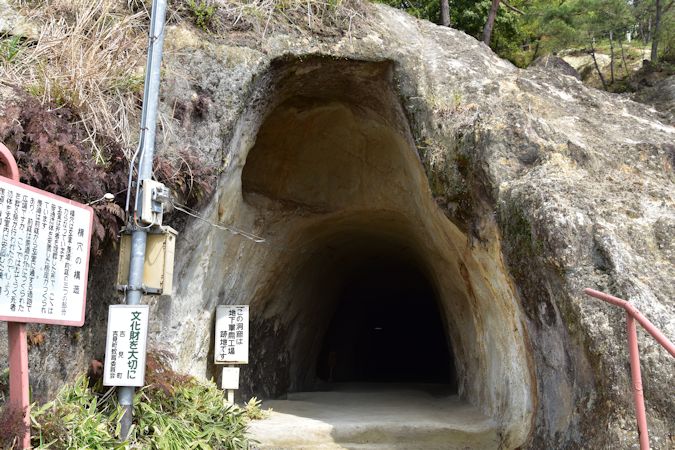なお、太平洋戦争中に中島飛行機の地下軍需工場を建設するため、この地に碁盤の目状に坑道が掘られた際、吉見百穴にも3箇所の坑口が掘られ、遺構の一部が破壊されてしまいました。これは、朝鮮からの労働者によって素掘りで掘られたものです。また、吉見百穴の最低部の穴ではヒカリゴケが見られ、国の天然記念物に指定されています。