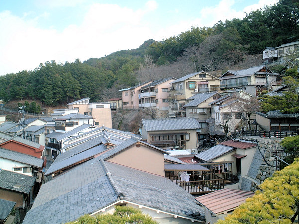 能舞台。こちらは江戸時代、1680年の建築だそうです。なかなか立派な一重切妻造り、妻正面、桧皮葺ですが、しかし色彩的に他の建物とあわないと感じるのは、私だけでしょうか?