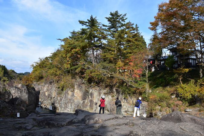 厳美渓(げんびけい)は、栗駒山を源流とする磐井川が、同じく栗駒山の噴火によって堆積したデイサイト質凝灰岩を浸食し、2kmにわたって造りだされた景観で、国の名勝及び天然記念物。