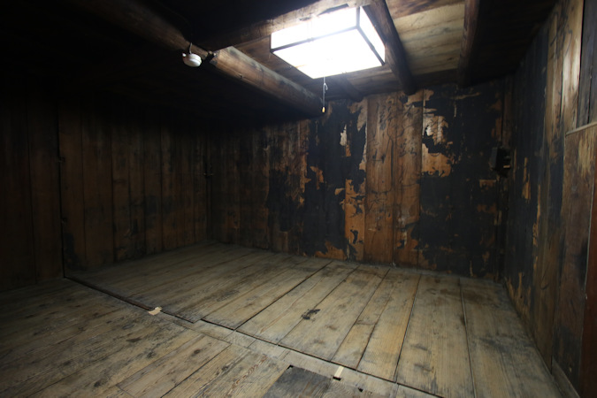 1階の様子。4階の軒桁まで達する、4本の通し柱が特徴。写真右側少し上が玄関。