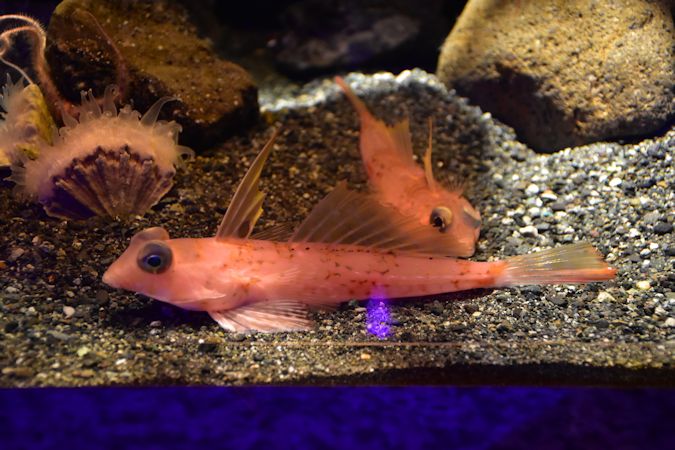 目の下が光る珍しい魚。専用のコーナーが設けられており、幻想的な風景が見られます。