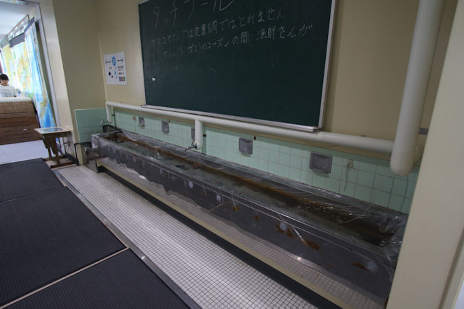 むろと廃校水族館は、2018(平成30)年4月26日に旧椎名小学校をリノベーションし、校舎及びプールに水槽を設置してオープンしたもので、ブリやサバやカメなどが泳ぐとともに、懐かしい教室の雰囲気も感じられるという、全国的にも類を見ない水族館です。