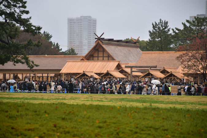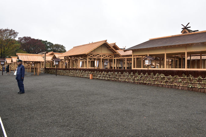 今回紹介する令和の大嘗宮は、2019(令和元)年11月14日(木)及び15日(金)に「大嘗宮の儀」が行われた場所で、皇居本丸に建設。11月21日(木)から12月8日(日)の18日間、外観が一般公開され、その後に取り壊されます。なお、今回から資材は再利用されることになっています。