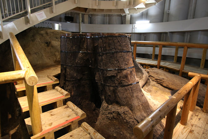 こちらでは巨大な幹と根株、小枝が残る幹の3本を展示しています。