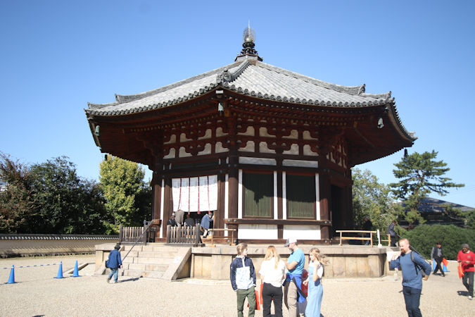 1210(承元4)年頃築。屋根を一重、本瓦葺とする八角円堂。運慶による木造弥勒仏坐像(国宝)や、木造無著菩薩・世親菩薩立像(国宝)などを安置。
