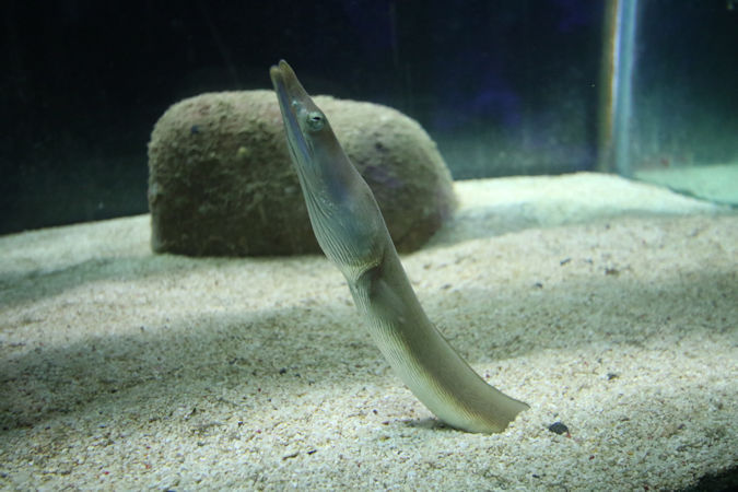 長さ24mの水中トンネルにサメやエイなど1300匹の魚類が泳いでいます。