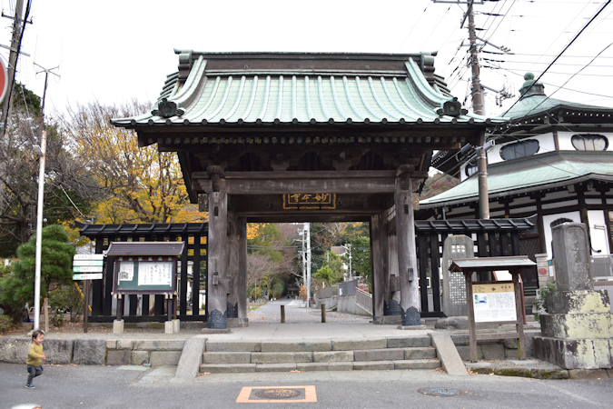 妙本寺は日蓮宗の寺院。鎌倉幕府の有力御家人である比企能員(ひきよしかず)一族の屋敷があった場所で、1203(建仁3)年に比企一族が北条時政と対立して滅ぼされた際、まだ幼少で京都にいたため生き延びたのが比企能本が日蓮聖人に出会って帰依し、比企一族の菩提を弔うために、この地を献上したのが始まり。