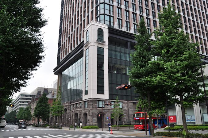 東京駅前すぐに存在。2003年2月、外観など一部を保存の上、高層ビル部を増築しています。
