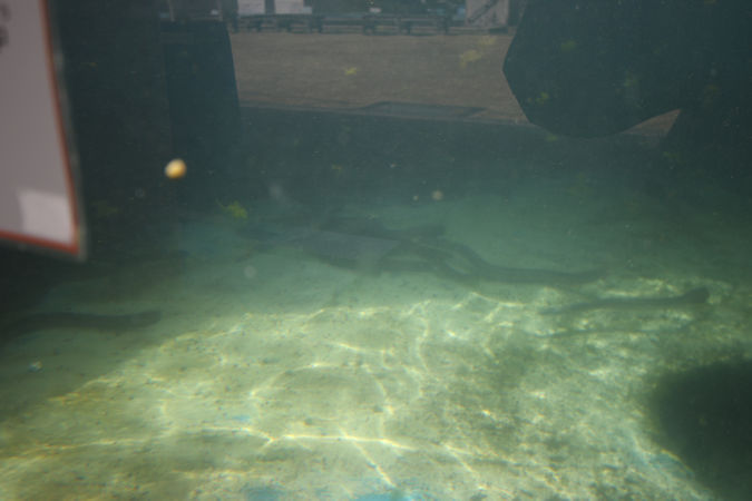 水量120トン深さ5メートル、天井まで曲線をえがくように水槽が広がっており、迫力があります。ここではサメ、エイ、ウツボ等、遠州灘や浜名湖に生息する数多くの魚を展示しています。