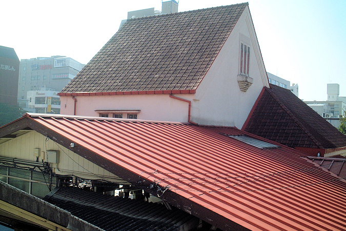 旧国立駅舎は、1926(大正15)年4月1日に鉄道省(のち国鉄。現・JR東日本)の国立駅開業時から使用されていたもので、国立市指定有形文化財。設計はフランク・ロイド・ライトに師事した河野 傳(つとう)。イギリスの田園都市の小住宅にみられる赤い三角屋根に白い壁、ロマネスク風の半円アーチ窓やドーマー窓が取り入れられているのが特徴です。