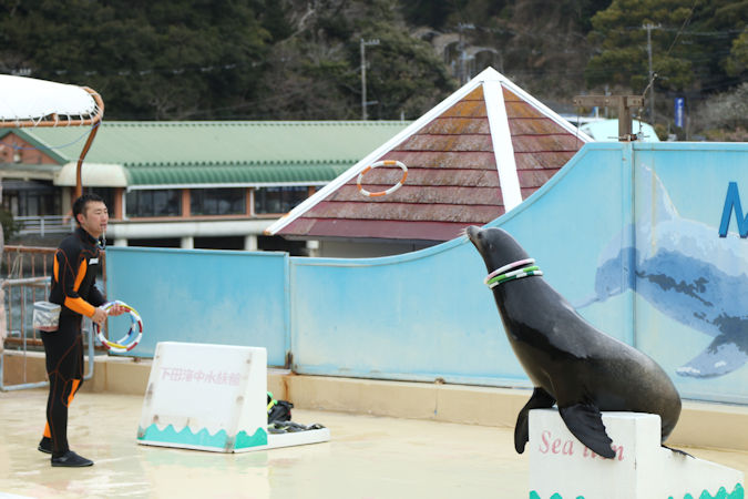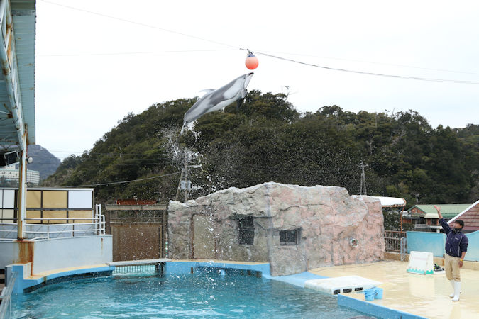 アクアドームペリー号には水深6mの水槽があるほか、伊豆の海の再現をテーマに魚類や無脊椎動物、海藻など50種10,000点もの生物が棲息しています。また、イルカとの距離が近いのが特徴で、イルカに餌をあげられる「ドルフィンフィーディング」、広い入江でイルカ達と一緒に泳ぐ「ドルフィンスノーケル」、いけすの中でじっくりとイルカとふれあう「うきうきドルフィン」、波打ち際でイルカとふれあう「ドルフィンビーチ」などが開催されています。