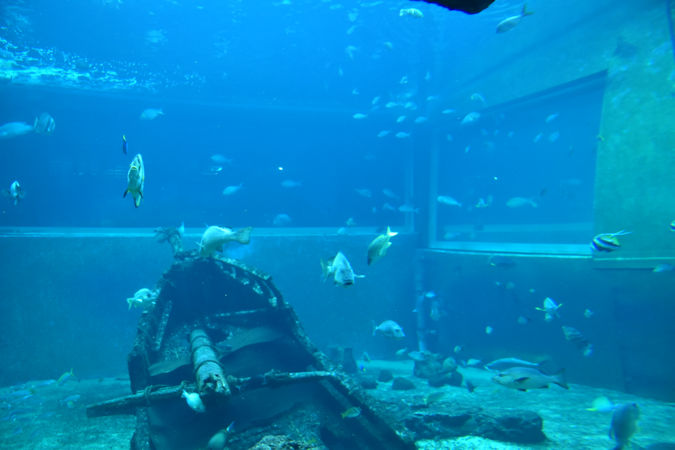中央に高さ7m、1,255tの海水を入れ、自然の光に満ちたオープンエアーの大水槽があります。