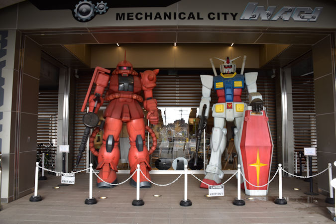 同じく稲城長沼駅前で見られるシャア専用ザク。これだけ大きなシャア専用ザクが常設され、ガンダムとセットで見られるのはここだけ。