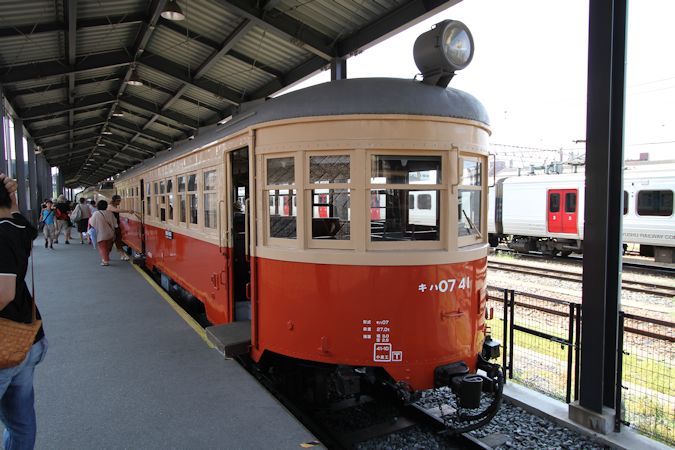 1937(昭和12)年製造。戦前を代表する機械式(クラッチ式)気動車で1両でも運転できる両運転台構造。2両連結も可能ですが、その際にはお互いの車両の運転士が合図を送りながら運転していたとか。なお、1962(昭和27)年にはディーゼルエンジン搭載の気動車に改造。1969(昭和44)年に国鉄宮原線(現在は廃止)で活躍を終え、豊肥久大運輸センター(旧:豊後森機関区)で保管されていました。