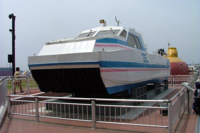 1989(平成)元年度に研究・開発が始まったもので荒れた海でも安全に航行できることを目標とした超高速貨物船です。速力50ノット(時速93km)、貨物積載量1000トン、500海里(約930km)以上の航続距離を持ちます。