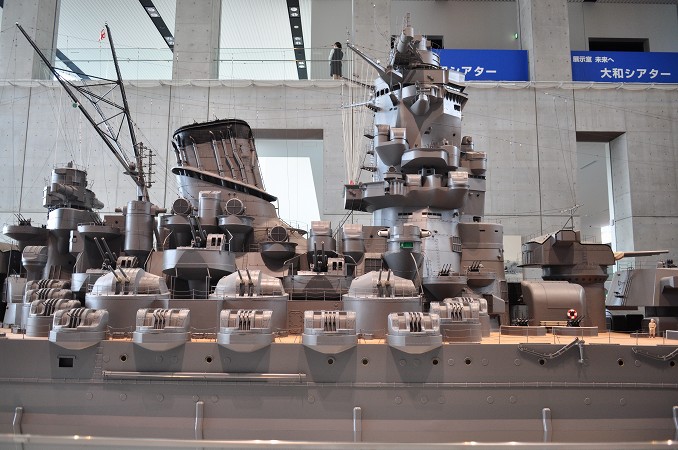 こうして悲劇的な最後を迎えた戦艦「大和」でしたが、これを造るにあたって開発・投入されたブロック工法・先行艤装や生産管理システム、製鋼技術などの多数の技術は造船のみならず新幹線や高層ビル建築など、日本全体に計り知れない影響を与えました。なお、この模型は全長約26m!! ということで、本物だと263mもあります。でかっ!