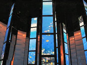 内部はこのように幻想的な雰囲気。約80枚のプラズマ・スクリーンが様々なオーストラリアを配信します。
