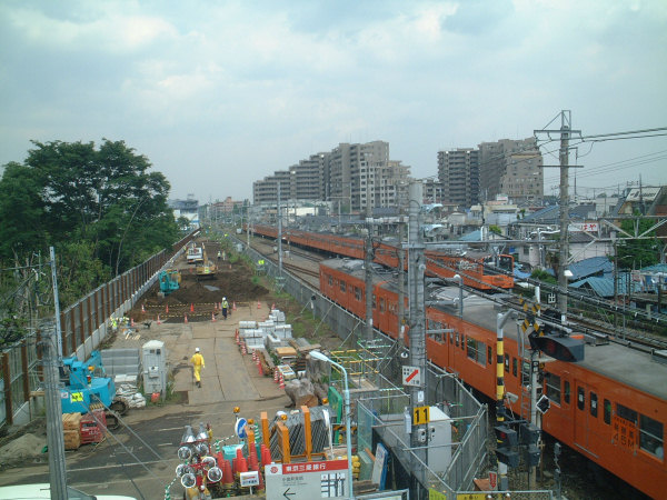 記念すべき、中央線高架化工事記録第1弾。高架化工事期間中に使用する、仮の路線を建設するための線路や仮駅舎が建設中だった頃の姿です。