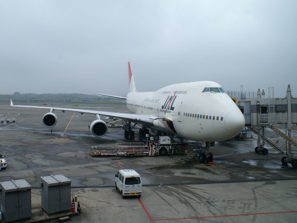 成田空港で出発準備中のJA8071。