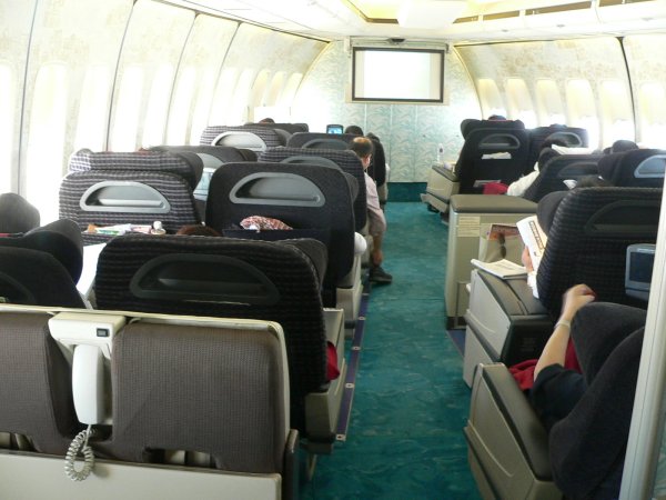 JA8183のAコンのキャビン。国際線運航の際にはエグゼクティブクラス。