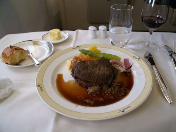 そして、その内容は・・・・素晴らしいの一言でした。ビジネスクラスとはまったく次元の違う食事に感服でした。まさに空の上のレストランと呼ぶにふさわしい内容と質でした。