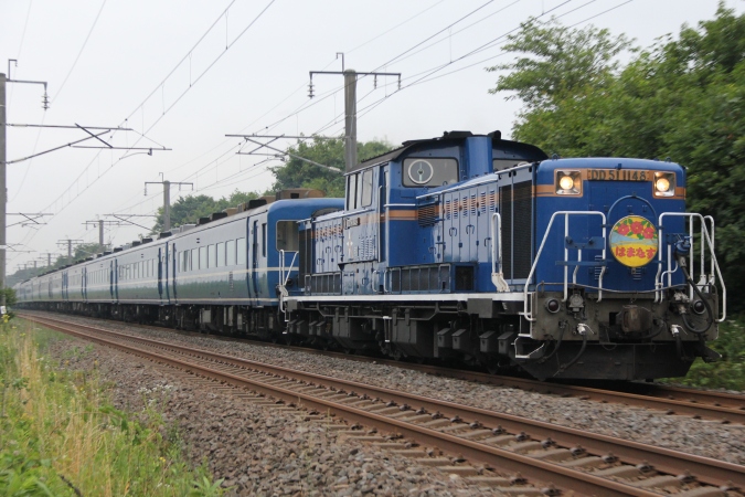 車両面においては、当初は14系の客車のみの編成であったが、寝台車の連結の要望が相次いだようで、平成3年になり、24系寝台客車を連結するようになった。