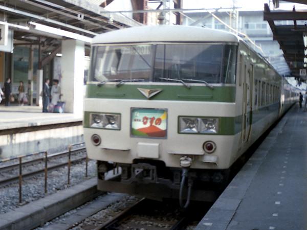 1985(昭和60)年3月、急行「なすの」を185系化して特急格上げしたもので、正式には「新特急なすの」。当初は上野〜黒磯間に9往復が設定されたが、利用客は低迷し、快速「ラビット」に次々と格下げされていった。1990(平成2)年3月改正で、新宿〜黒磯間に運転が改められ、朝に上り1本、夕方に下り1本の体制に。1995(平成7)年12月1日、東北新幹線東京駅〜那須塩原駅間の「あおば」を「なすの」に改称すると共に、在来線の新特急は朝を「おはようとちぎ」、夕方を「ホームタウンとちぎ」と改称された。