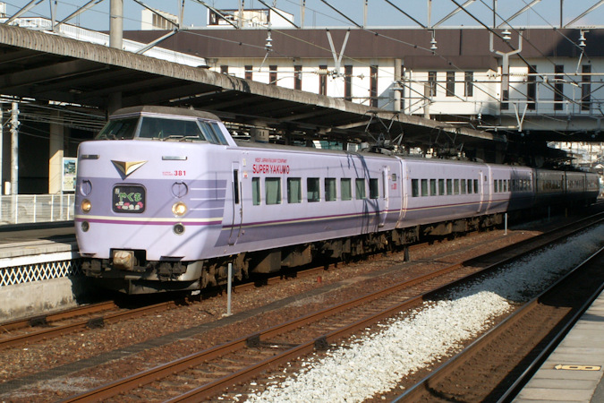 1972(昭和47)年、新幹線が新大阪から西進して、岡山まで開業した。ここで、岡山で新幹線から接続して、伯備線を通って米子・出雲市方面へ向かう特急列車が設定され、「やくも」となった。当時伯備線は非電化であったため、キハ181系による運転となり、運転開始当初は3往復であったが、増発が実施され、6往復にまで増強され、全列車気動車で運転される特急としては唯一L特急に指定されるなど、非常に好調な成績を残した。伯備線は輸送も好調なことから、電化されることとなり、昭和57年に電化が完成、「やくも」もキハ181系から381系に置き換えられ、さらに急行列車の格上げなども実施され、本数は大幅に増え、381系の高加減速なども手伝い、大幅なスピードアップを果たした。