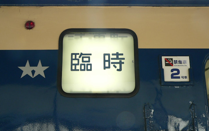 行先表示幕のアップ。「白虎」の時とは変わって「臨時」幕だった。同じ車両なのに扱いがここまで違うのはどういうことなのか・・・。