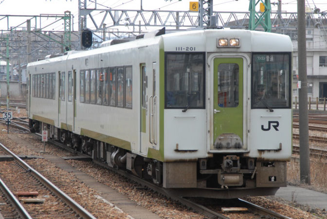この駅で米坂線を走ってきた気動車にお目にかかれました。まだキハ52って走っていたんだ。乗りたいなぁと思いつつも、今回は出来ません。そして、次の列車が到着します。