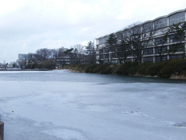 さて、こうやって列車を撮影しているうちに残り1時間を切ってしまいましたが、江戸時代に秋田の政治の中心であった久保田城(千秋公園)へ。ここは、関ヶ原の戦いのあとに転封された佐竹義宣が築城した城。お堀の水が凍ってます・・・。
